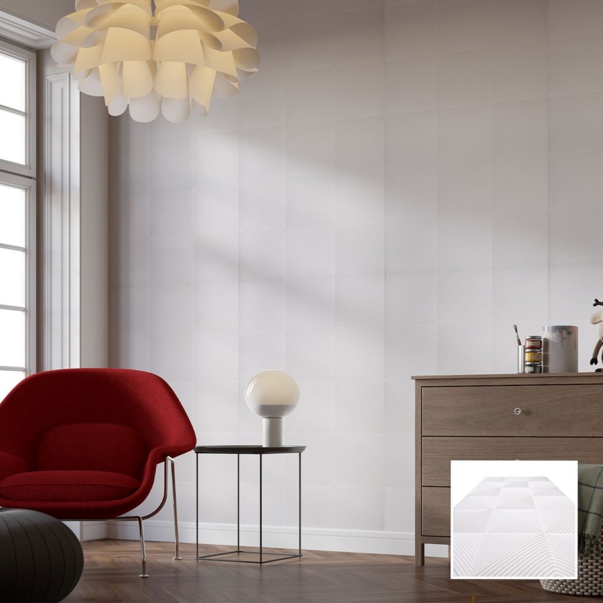 Стенен декоративен 3D панел, 120*60*2.5см, E009, PU бял