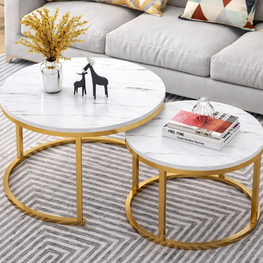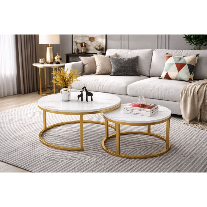 Комплект 2 броя холни маси Ника|мраморен плот|златна основа