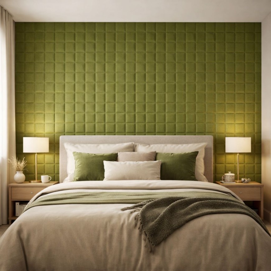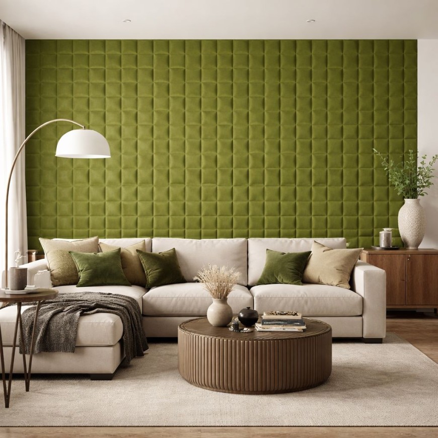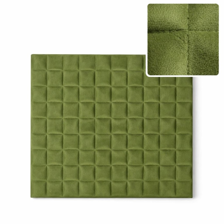 3D самозалепващият панел XY-107 в елегантен маслинено зелен цвят придава стил и уют на всяко помещение. С мека велурена текстура и изразен релеф, той създава усещане за дълбочина и луксозен завършек на стените.