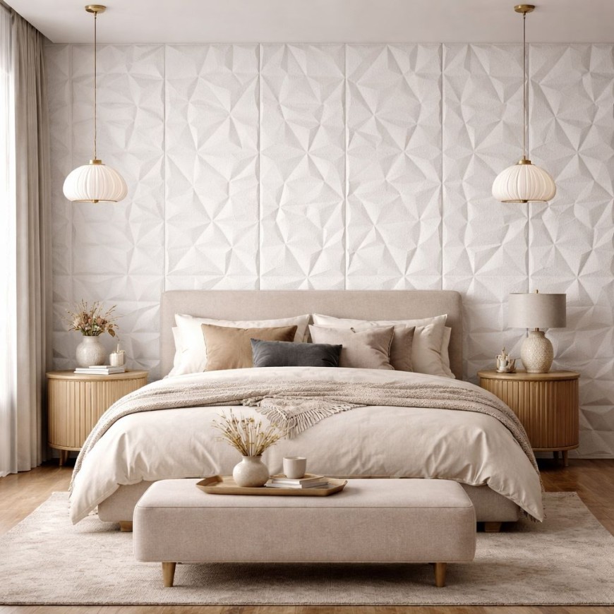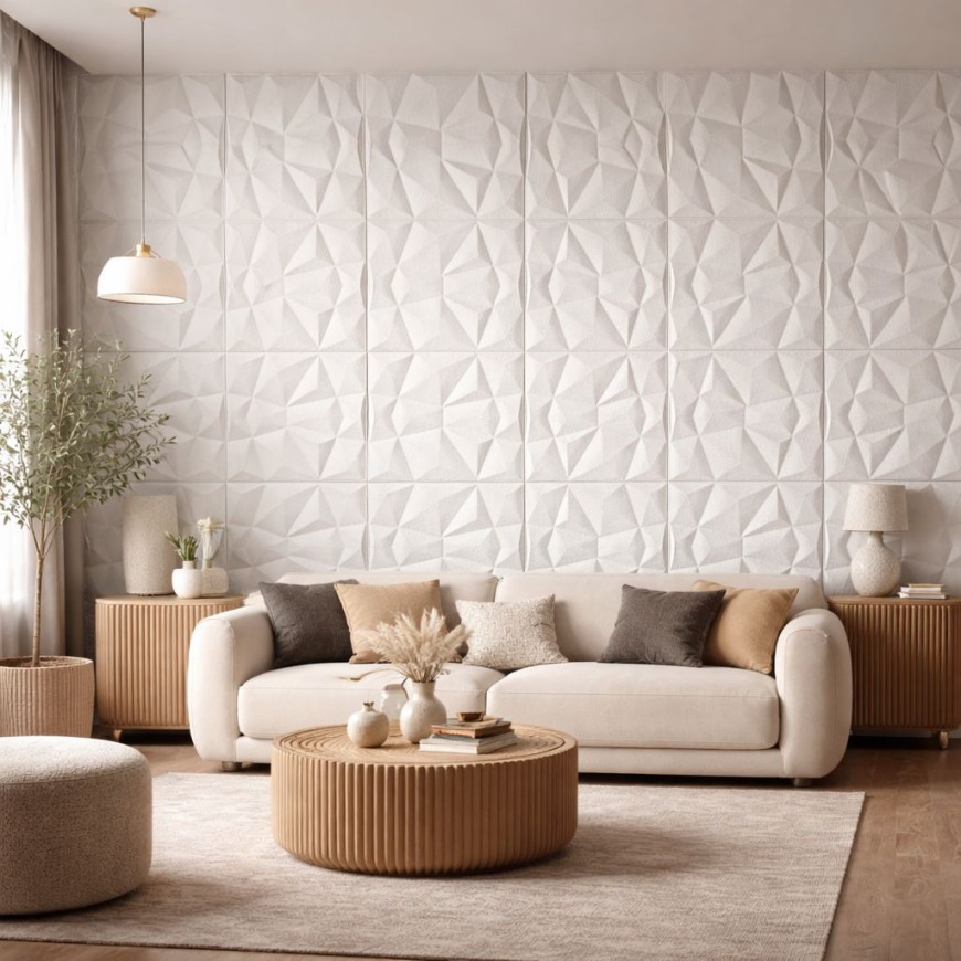 Тапет 3D самозалепващ за стени и тавани ND1, бял, 70 х 70см