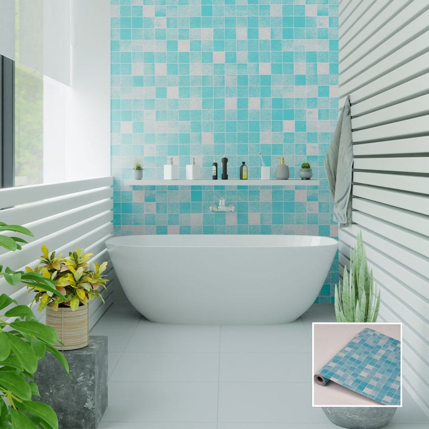 Винилов тапет синя мозайка C-2026-2, 10м х 45см, самозалепващ